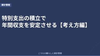 家計管理 特別支出の積立で年間収支を安定させる【考え方編】 毎月黒字なのに年末に貯金が残らない原因は特別支出の管理不足。特別費を年間で把握して積み立てる仕組みの考え方を解説した入門編。家計年間収支を安定させる積立管理術の基礎を紹介します。 2026.04.05 家計管理