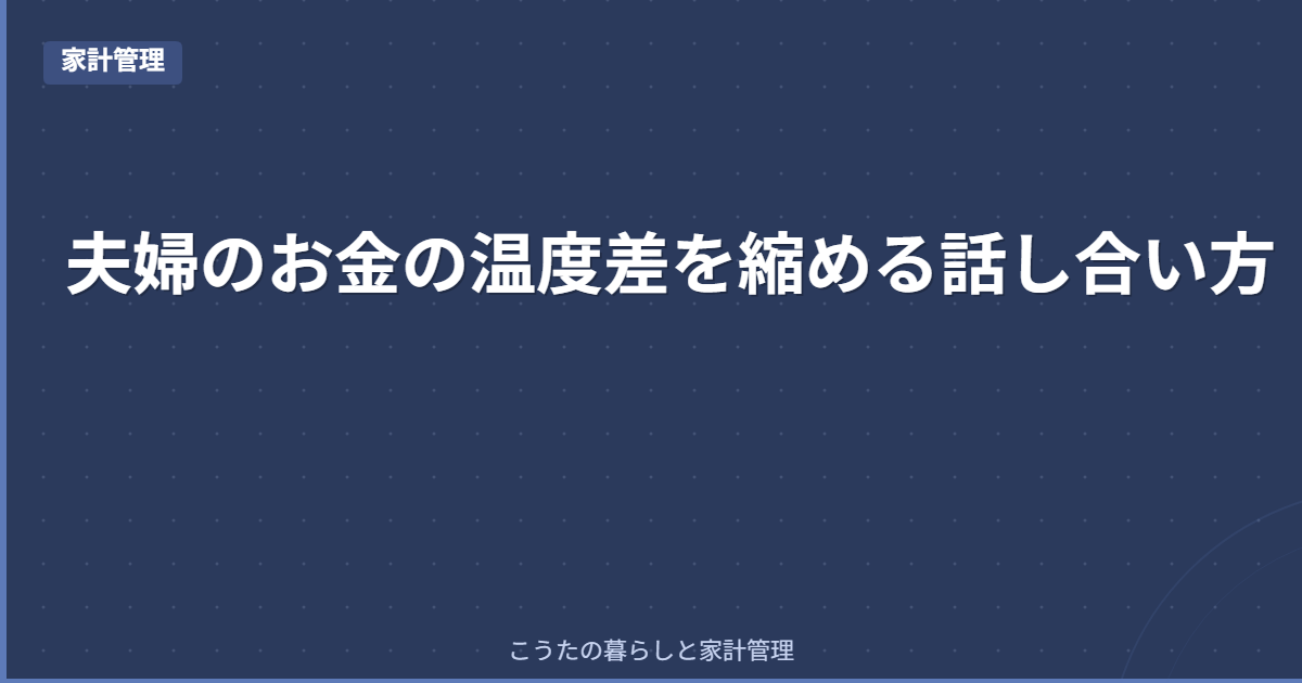 家計の話し合いで大事なのは、「一度で全部決めようとしない」ことだと思っています。