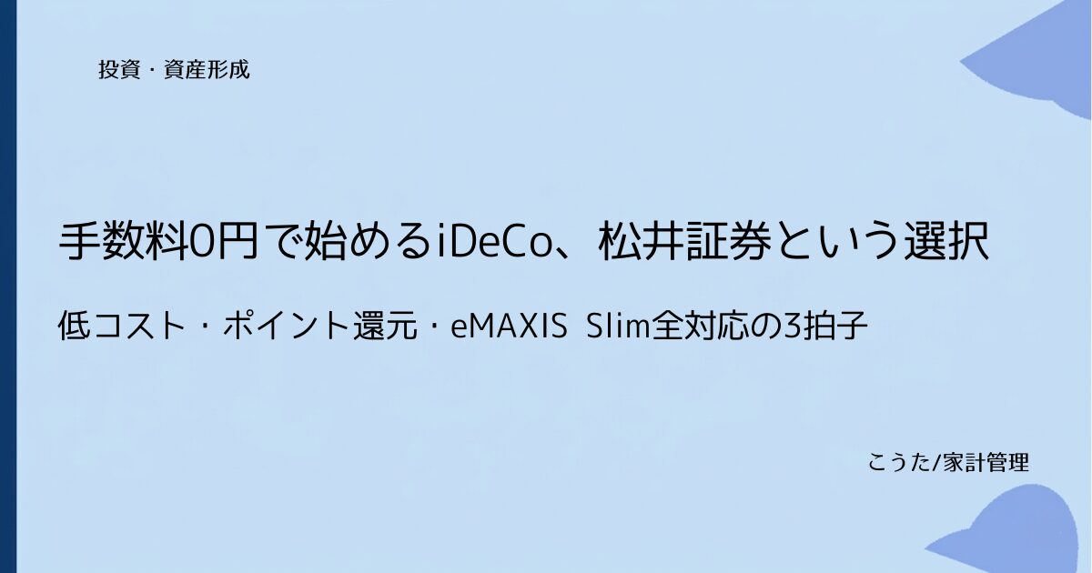 家計管理をしている立場から、松井証券のiDeCoについて率直に整理してみる。