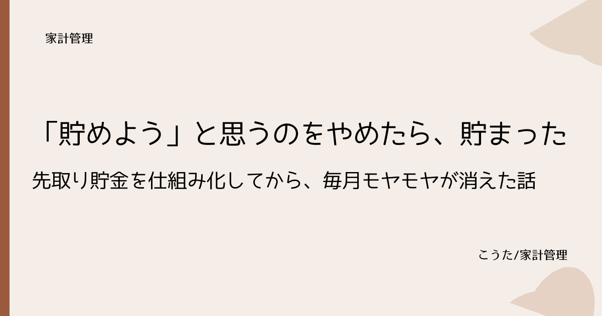 これだけで、「残ったら貯める」から「先に取って、残りで暮らす」に変わりました。