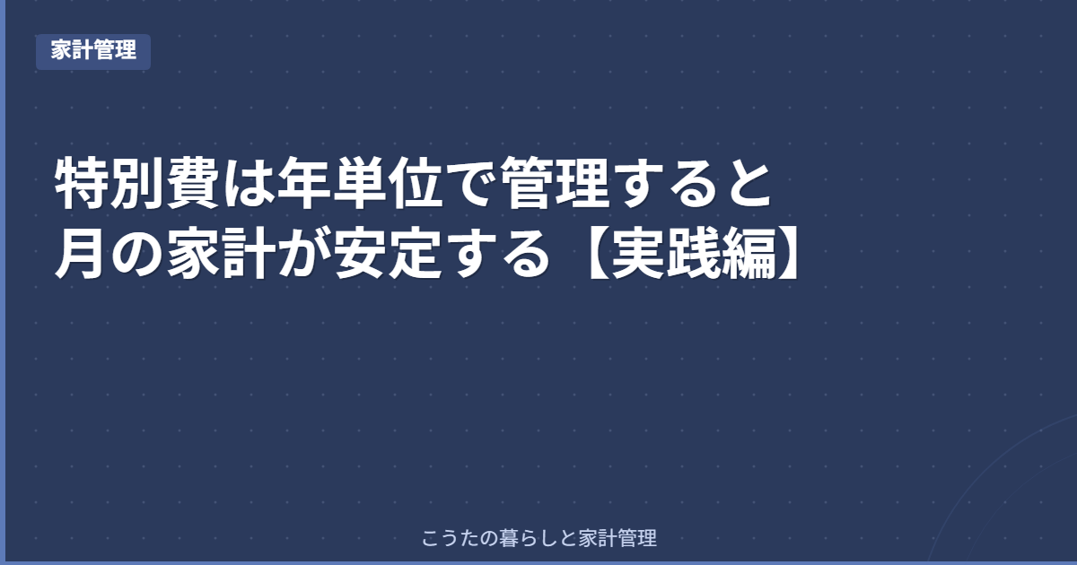 特別費を年単位で切り出すようにしてから、月の家計を見たときの「なんで?」が減りました。完璧なやり方だとは思っていませんが、今の我が家には合っていると感じています。