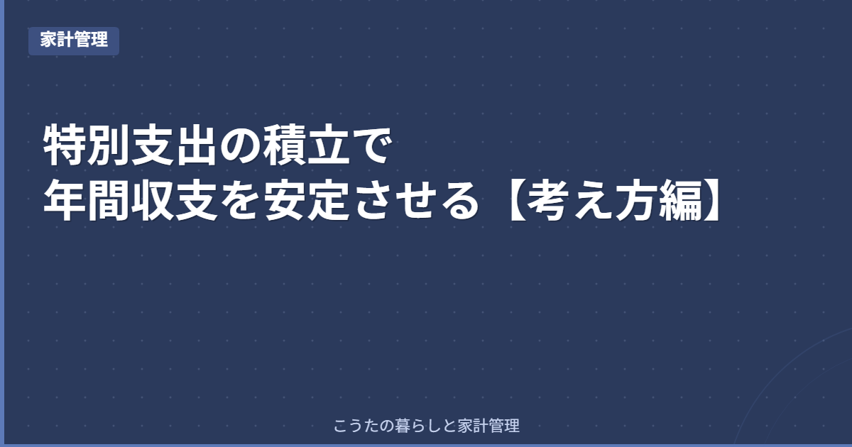 具体的な管理方法と我が家の特別費リストはこちら → 特別費は年単位で管理すると月の家計が安定する【実践編】