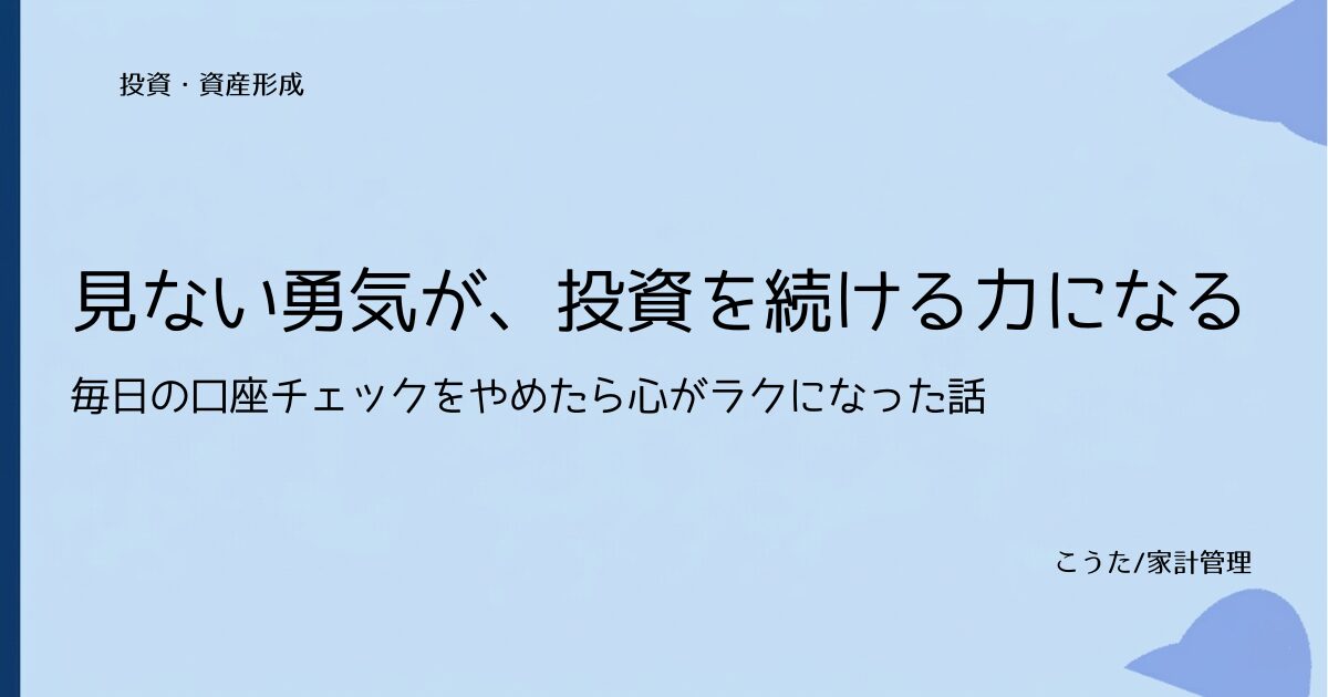 投資は「見守る」くらいの距離感が、長く続けるコツなのかもしれません。